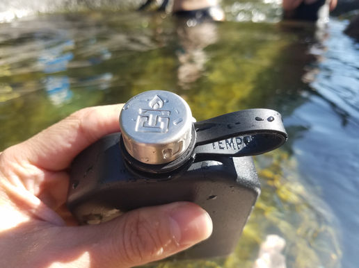designed with adventure in mind - this flask is pocket-sized, unique and has a secured lid. The chamfered shoulders allow the user to tuck the strap to the side easily while drinking, without having to rotate the strap out of their face's way.